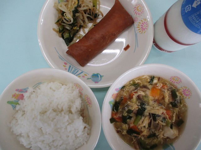 ご飯・牛乳・野菜春巻・中華和え・中華たまごスープ