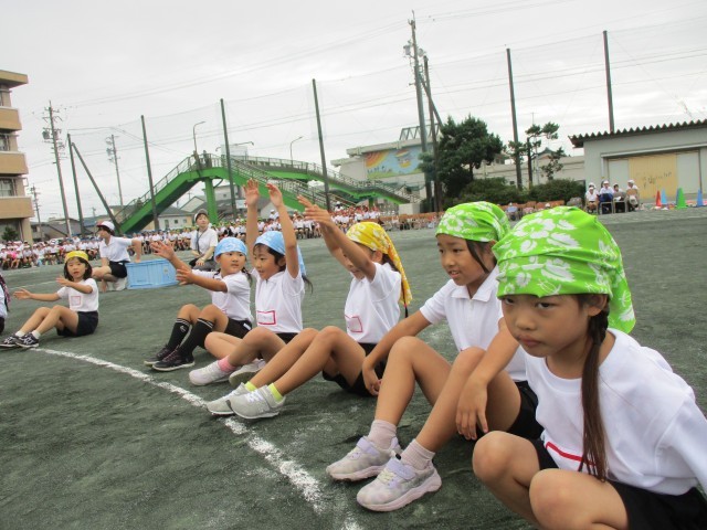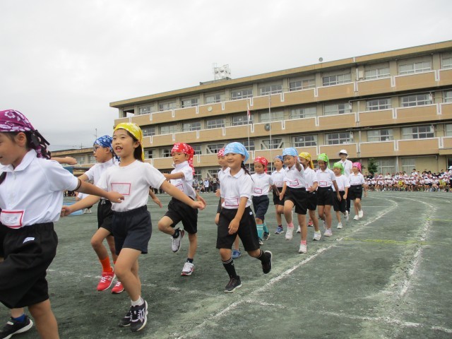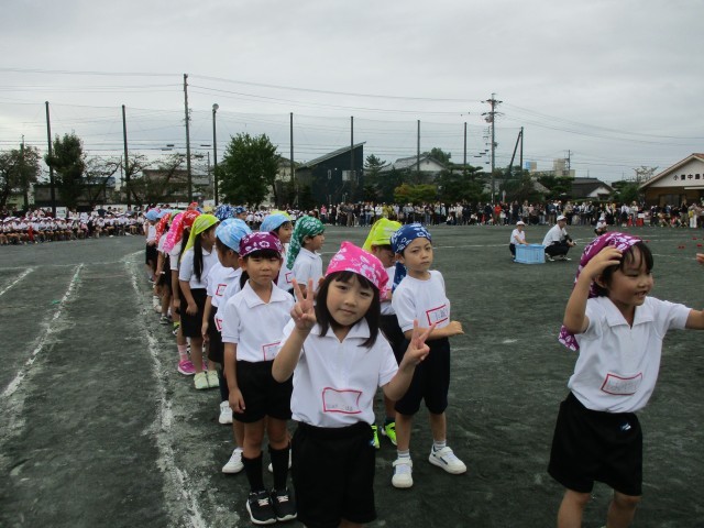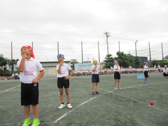 朝からわくわくいっぱいの子どもたち。玉入れ、40メートル走と力いっぱいがんばることができました。