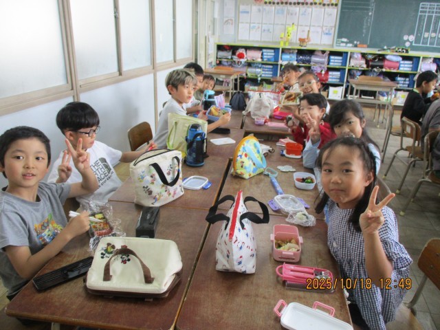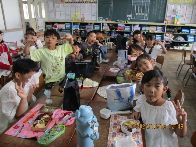 待ちに待ったお弁当タイム。「先生、見て見て!」とうれしそうにお弁当を見せてくれました。
