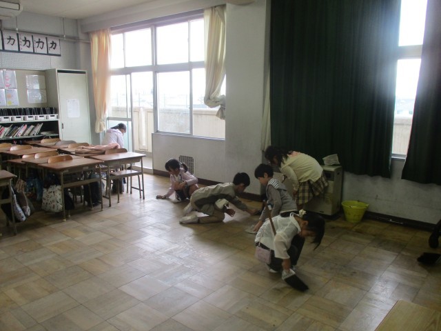 スポーツフェスティバルで椅子を外に持って行ったので、教室内はいつもより汚れていました。それでも、子どもたちは一生懸命に掃除をしていました。