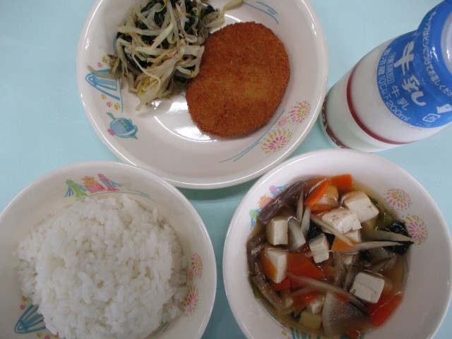ご飯・牛乳・コロッケ・鉄骨和え・けんちん汁