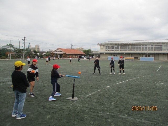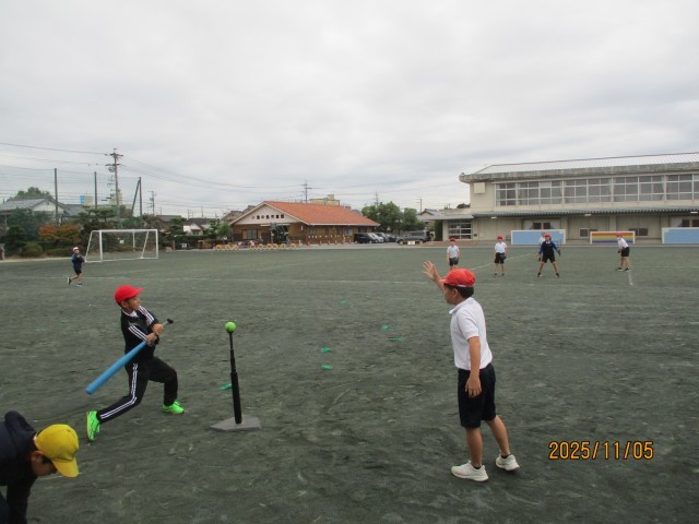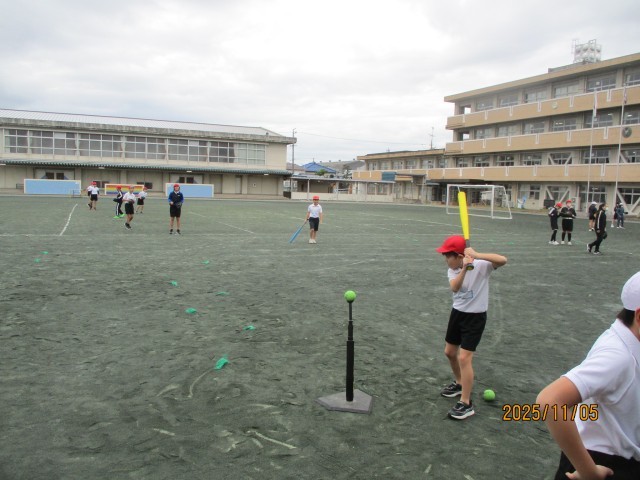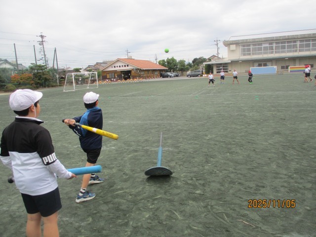 4限の体育では、「Tボール(ベースボール型ゲーム)」の学習でした。