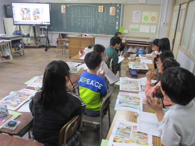 道徳の授業の様子です。仲間と、活発に意見を交流しています。