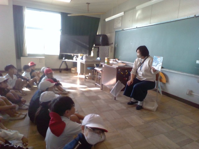 今日の朝は、くれよんさんによる読み聞かせがありました。子どもたちは、楽しそうに、夢中になって聞いていました。