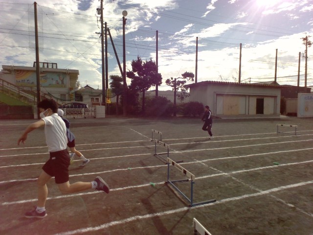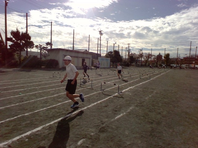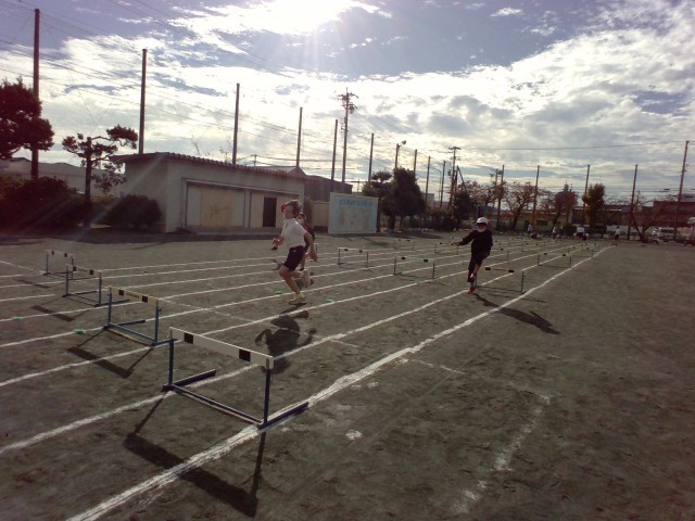 今日は体育でハードル走を行いました。