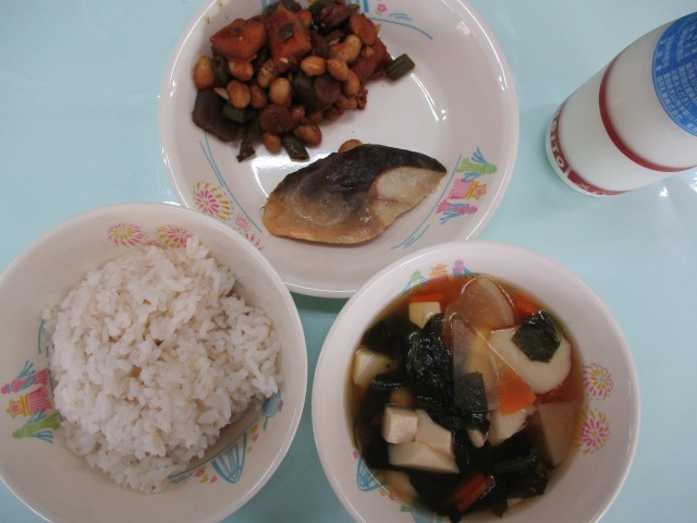 麦ご飯・牛乳・ほっけの塩焼き・鉄火みそ・けんちん汁