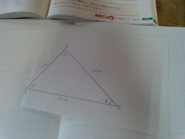 今日は三角形や四角形の拡大図や縮図をかきました。