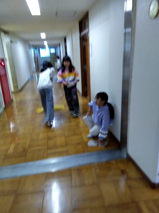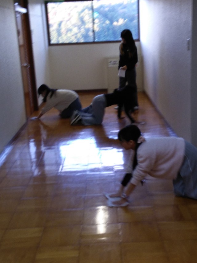 お世話になった部屋や廊下の掃除です。「来た時よりも美しく」綺麗にしています。
