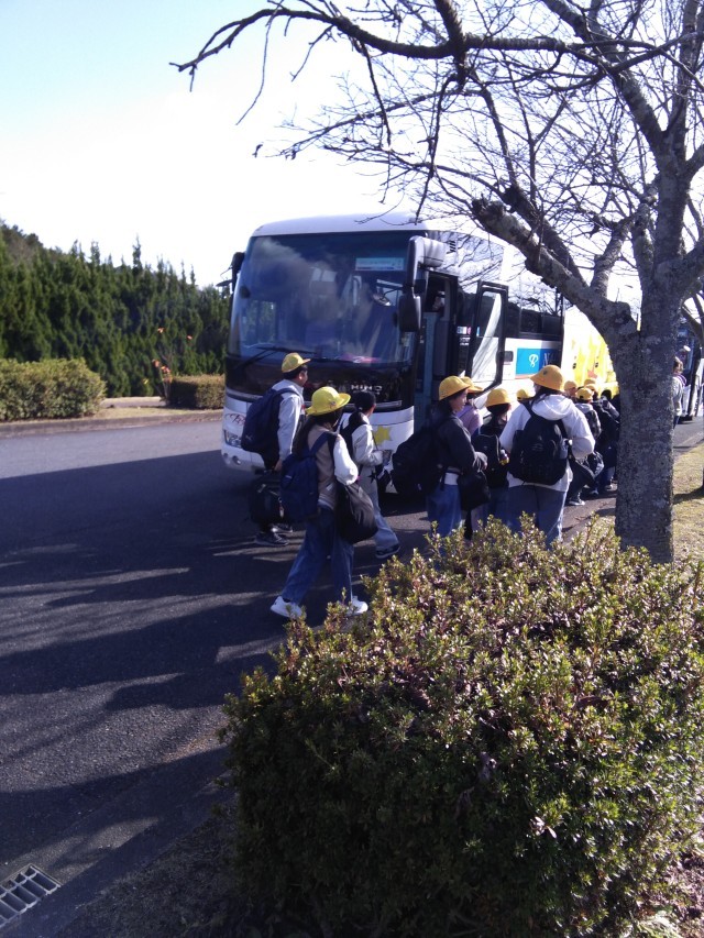 バスに乗りました。13時20分、小信中島小に向けて出発しました。