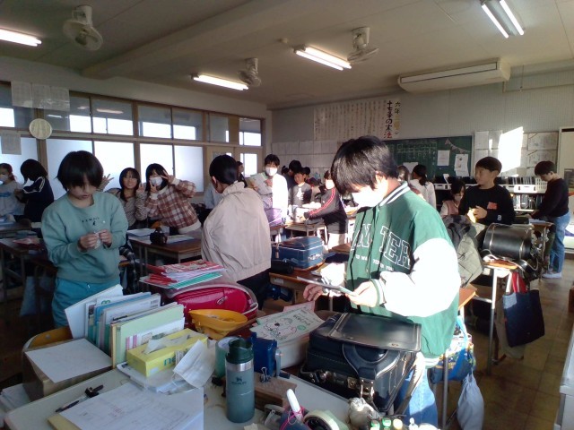 1組は図工、2組は書写、3組は帰りの準備の様子です。