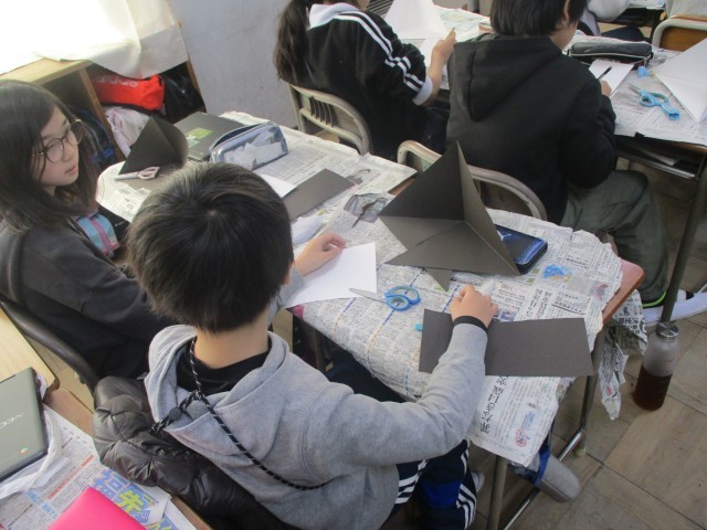 図工の授業では、立体的なクリスマスカードを作っています。どんな作品が完成するか楽しみです!