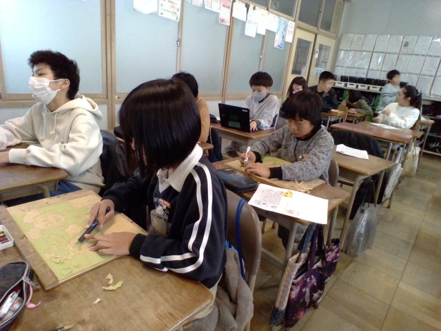授業の隙間時間に、図工の版画や漢字ドリルでの復習を行いました。