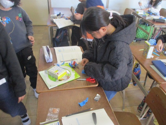 理科の授業は、豆電球に明かりをつける実験をしています。
