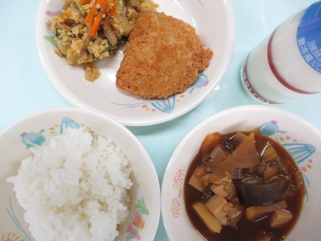木曽川がうみ出した扇状地にある一宮市は、水はけのよい土地です。その特徴を生かし、さまざまな野菜が作られています。今日の給食に入っている、一宮市産の食材は「きりぼしだいこん、なす、はくさい、だいこん」そして「卵」です。地元の食材を味わっていただきました。
