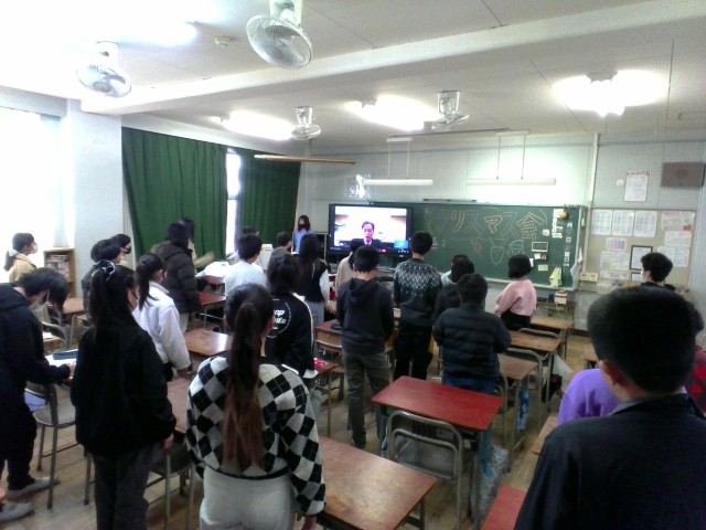 校長先生のお話を聞きながら、2学期の振り返りをしました。