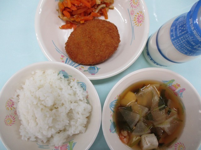 ご飯・牛乳・コロッケ・にんじんのきんぴら・えびと豆腐のくず汁