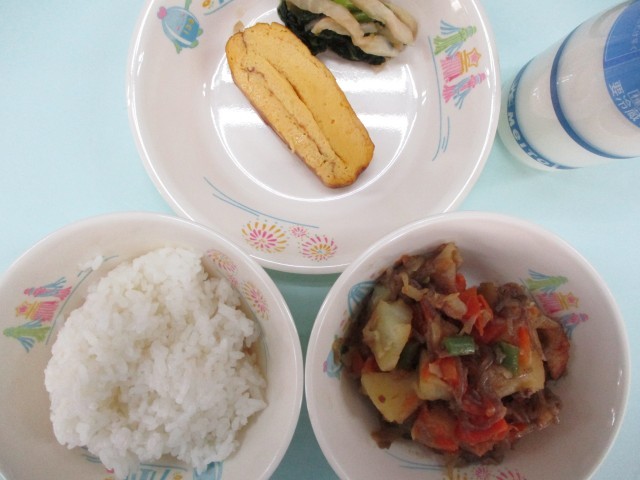 ご飯・牛乳・厚焼きたまご・切り干しだいこんの甘酢和え・肉じゃが