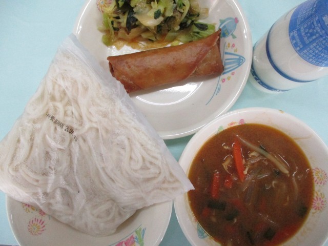 ソフト麺・牛乳・春巻・海藻の中華和え・豆乳坦々麺