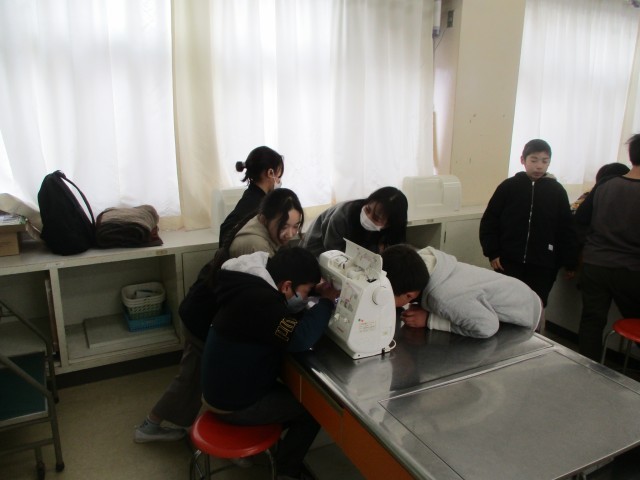 5年生の家庭科の授業に、保護者ボランティアの方にお手伝いに来ていただきました。