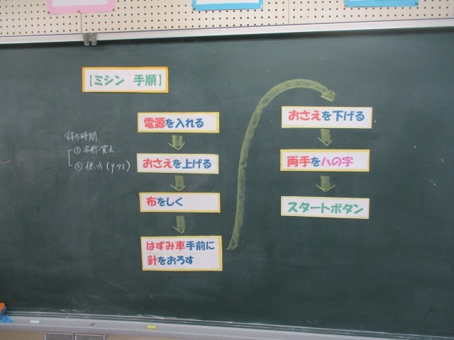 授業では、ミシンの使い方を学習しました。今日は、糸のかけ方です。