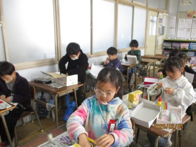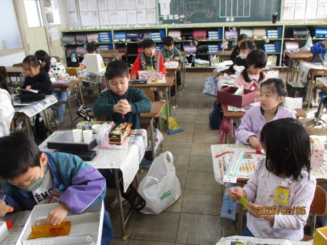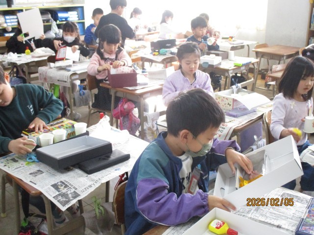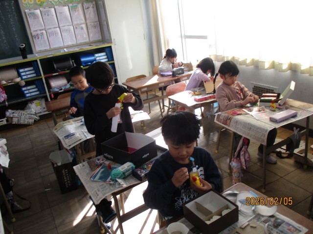 図画工作「たいせつボックス」の学習をしました。自分の大切なものを入れる箱を作ります。