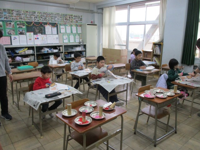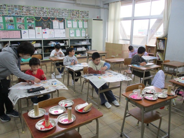 ひまわり学級のみんなで、スタンプを押したり、好きな動物の絵を切ってカードを作っています。