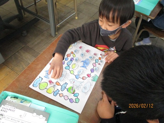 「とんとんずもう」「すごろく」で遊んだり、学校のことについて教えたりしました。