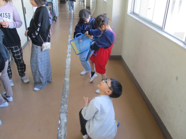 新しい取り組みでこのぶんちょうを探せ!がありました。友達やペアのお兄さん、お姉さんたちと協力して校内に隠れたこのぶんちょうを探しました。ルールを守って隠された5つの言葉を楽しく探すことができました。