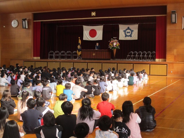1年生との対面式も行いました。6年生の児童が代表であいさつをした後、1年生から「よろしくお願いします。」のあいさつをしました。