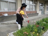 生活単元学習で、玉ねぎとチューリップの花に水やりをしました。「収穫するのが楽しみ!」と嬉しそうな様子が見られました。