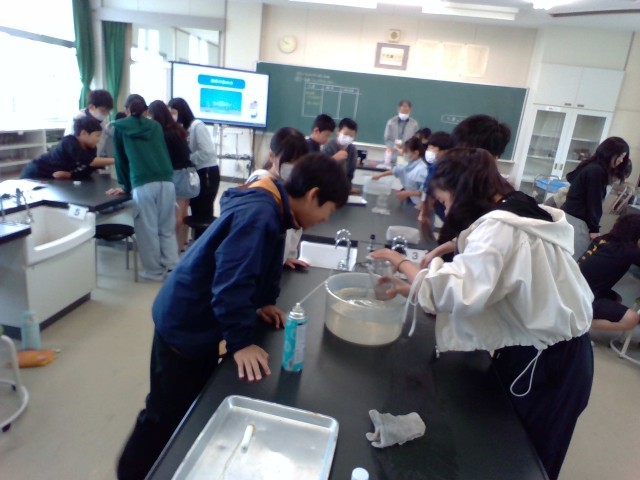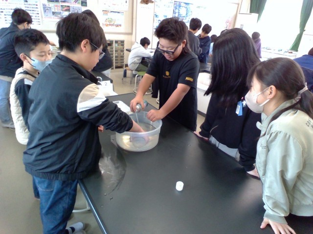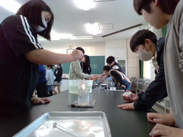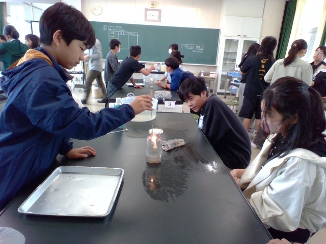 今日は理科で「気体によってものの燃え方は変わるのか」の実験を行いました。