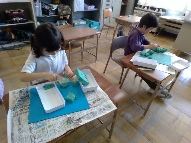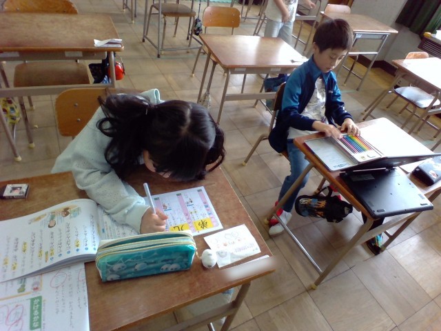 3時間目のひまわり学級の様子です。各学年頑張っています。折り紙の切り絵では、どんな形になるか想像しながら切りました。