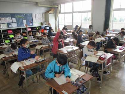 今日は、カタカナで書く言葉を学びました。カタカナを使って書く言葉を学んだあとで、教科書の絵を見ながらカタカナを使った文を作りました。楽しい文が出来上がっていました。