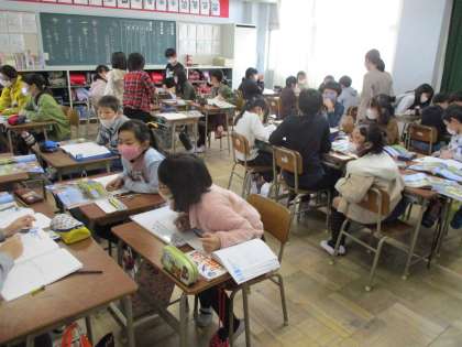 理科は、秋の生物について学び始めました。今日は、教科書の写真から秋の様子で気付いたことをグループでホワイトボードにまとめました。教科書の夏の写真と見比べながら秋を見つけている子もいました。