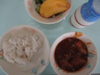 わかめごはん・牛乳・けんちん汁・つくね・れんこんのきんぴら