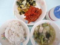 麦ご飯・牛乳・肉じゃが・いわしの梅煮・そくせき漬け