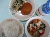 ごはん・牛乳・さといものみそ汁・白ごまつくね・にんじんの卵いため
