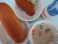 麦ご飯・そぼろ丼の具・牛乳・玉ふのすまし汁・骨太和え