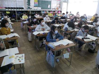今日の国語の時間は、教科書にある民話の「三年とうげ」を読んで、起承転結の組み立てについて考えていました。起・承・転・結のそれぞれの場面で、どのようなことが書かれているのかを考えていました。