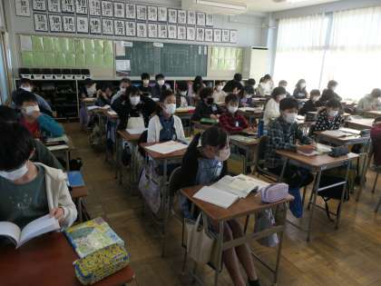 国語の時間は、目的や条件に応じて計画的に話し合うことを学習します。今日は、自分で決めた話し合いのテーマを近くの友だちと交流して伝えあっていました。決めた議題の目的やその条件を伝え合いながら、計画的な話し合いができるようにしていました。