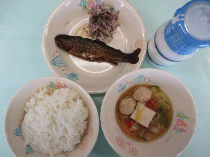 ご飯・牛乳・ちゃんこ鍋・愛知のにじますかんろ煮・赤じそ和え