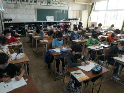 今日は、割合の時間に学習したことを復習していました。「何倍になるか」を考えて文章問題に取り組んでいました。