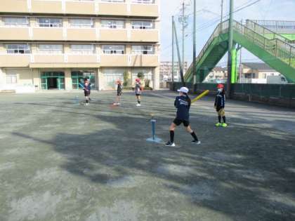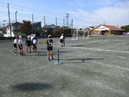 今日の体育の時間はTボールのバッティングの練習をしました。ボールをよく見て、打ちました。