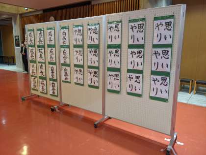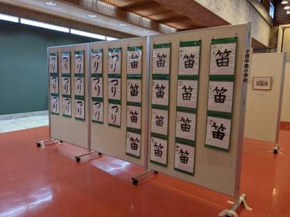 尾西生涯学習センター(墨会館)集会室で、10時〜15時の間に「小信中島公民館文化祭」が開催されています。日ごろ公民館で活動されているグループの作品や個人応募の作品とともに、本校児童の書写作品や、「みんなでつくろう 地域の和」ポスター作品、本校を卒業した尾西第三中学校の生徒さんの作品などが展示・掲示されています。