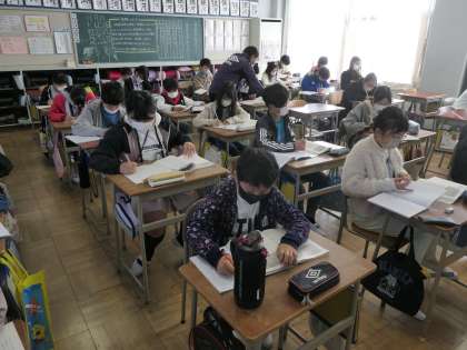 今日の国語の時間は、教科書にある「鳥獣戯画を読む」の各段落に書いてあることをまとめていました。この文章に書いてある表現の工夫を読み取り、内容をまとめていました。学んだことを使って、自分でも表現を工夫した文章を書けるようにしていきましょう。