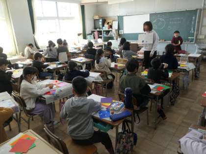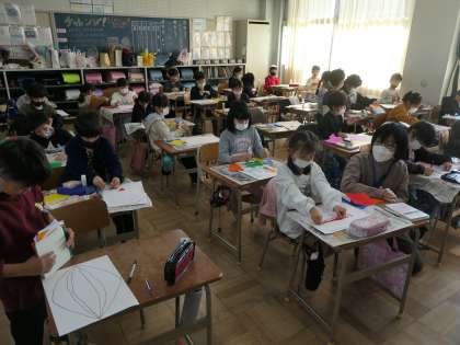 今日の図工の時間は、「ふしぎなたまご」の卵の色付けをしていました。色鉛筆で色をつけたり、小さく切った色紙を貼りつけて色つけをしていまいた。きれいな卵が出来上がったかな。