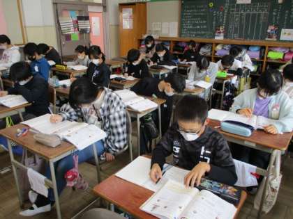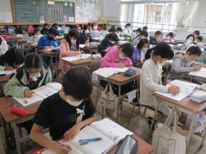 今日の算数の授業は平均です。グループの平均から、全体の平均を出す方法を考え、問題を解きました。みんな真剣に考え、頑張りました!