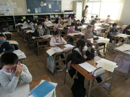 今日の国語の時間は、おもちゃ作りの説明文を書いていました。自分が作ったおもちゃのつくり方を書いていました。「まず」「それから」などの文をつなげる言葉に気をつけて書いていました。