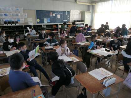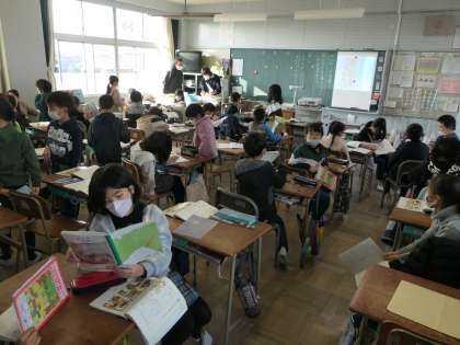 今日の国語の時間は、カタカナが入った文を作っていました。できた文は、班で互いに発表し合っていました。カタカナが入った楽しい文が書けていました。