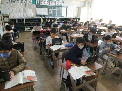 今日の道徳の時間は、教科書の「泣いた赤鬼」のお話を通して、友情とは何かを考えていました。赤鬼がなぜしくしく泣いたのかを考えて、タブレットパソコンを使って意見交換をしてました。